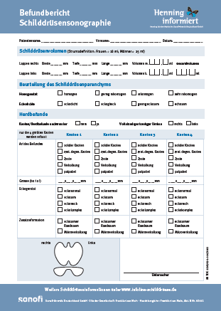 Alle wichtigen Parameter für die Schilddrüsensonographie und deren Dokumentationen übersichtlich auf einen Blick - laden Sie sich hier den Befundbericht herunter: